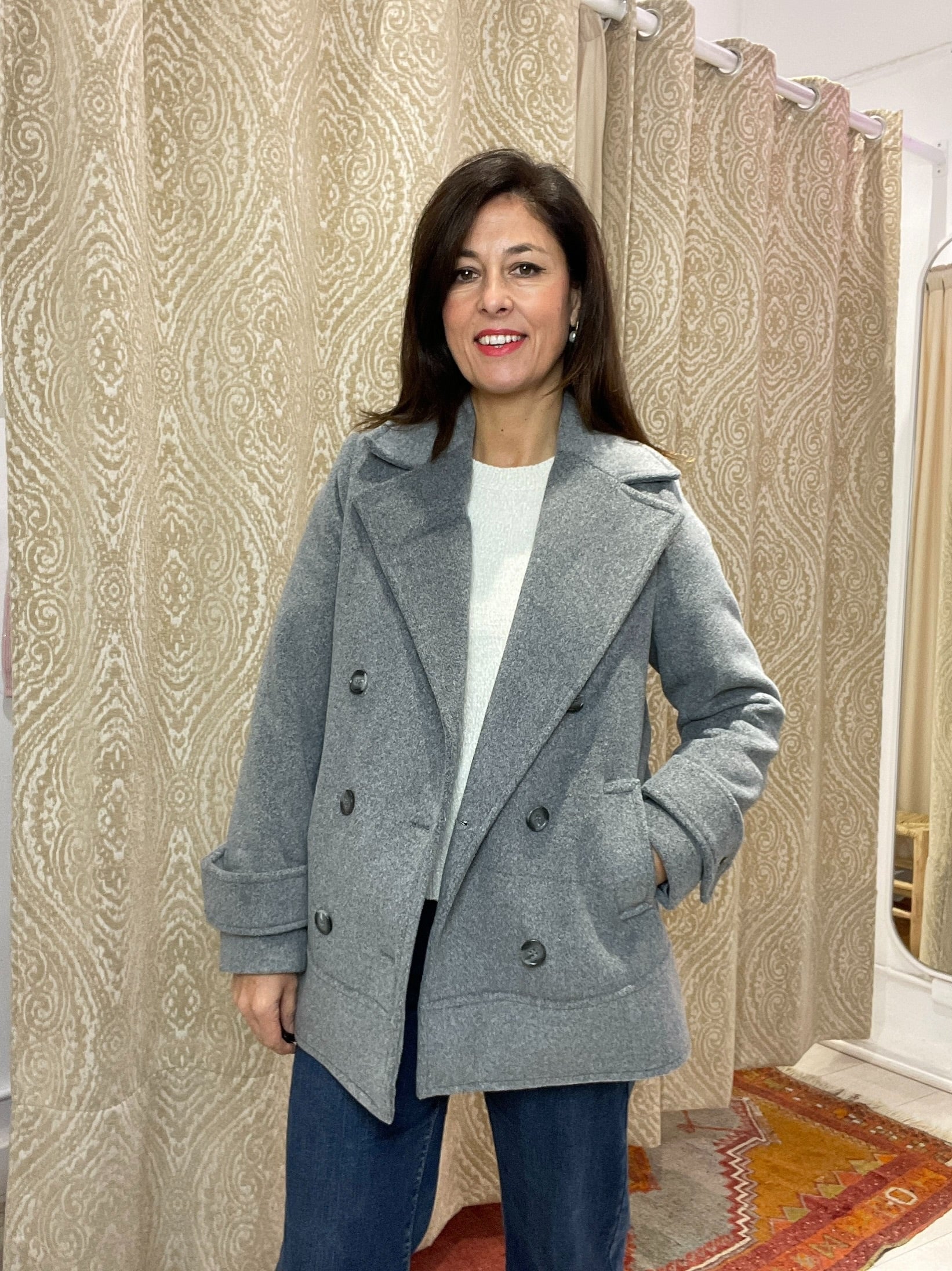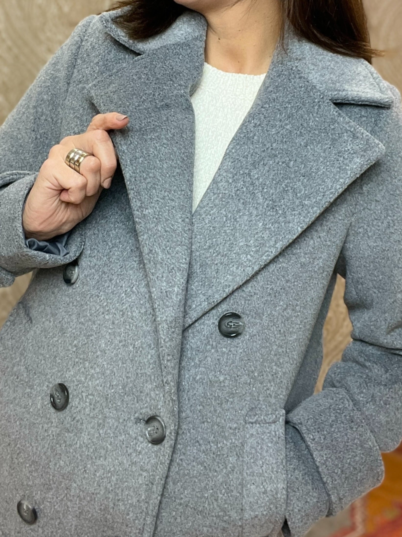 -Abrigo de paño extra suave con cierre de botones cruzados, cuello solapas y bolsillos.