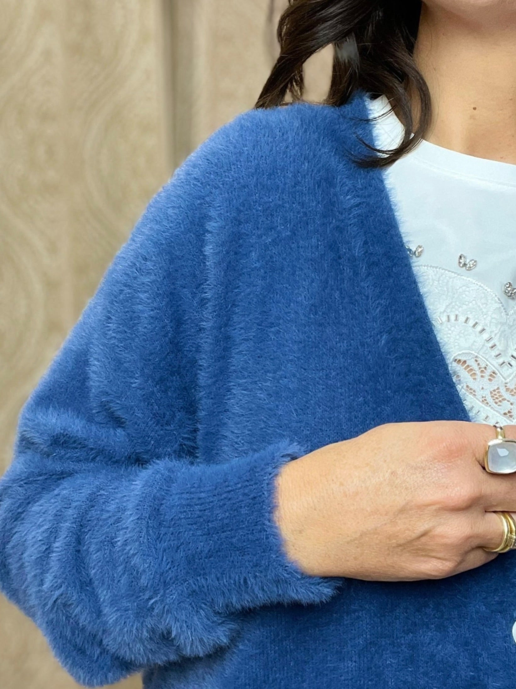 DESCRIPCION: -Chaqueta en punto tipo peluche, cuello en V, cierre de botones y manga larga. -Detalle del...