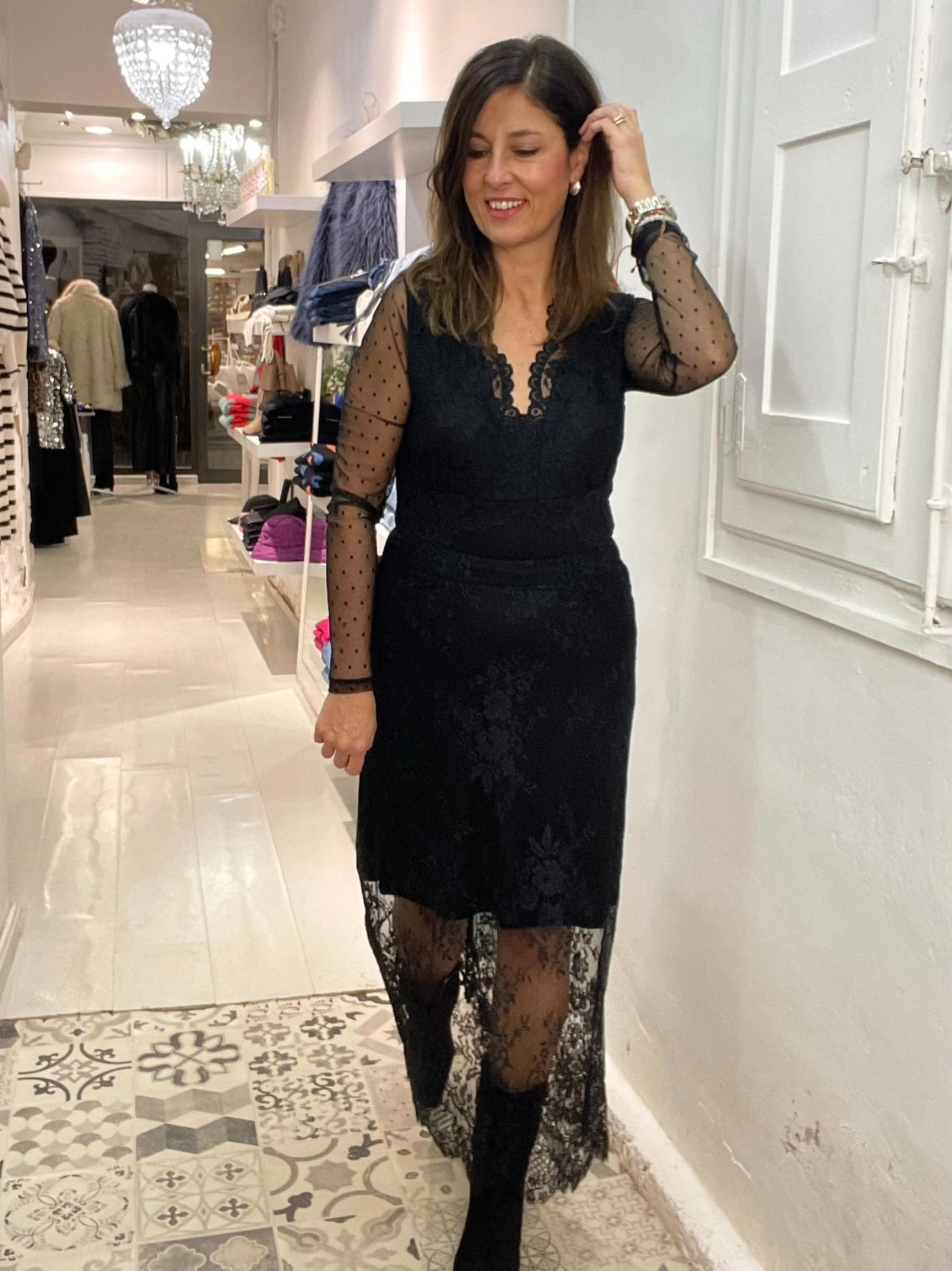Lucia mide 1,67 cm., normalmente usa una talla 36/38, y en esta ocasión lleva una 38.