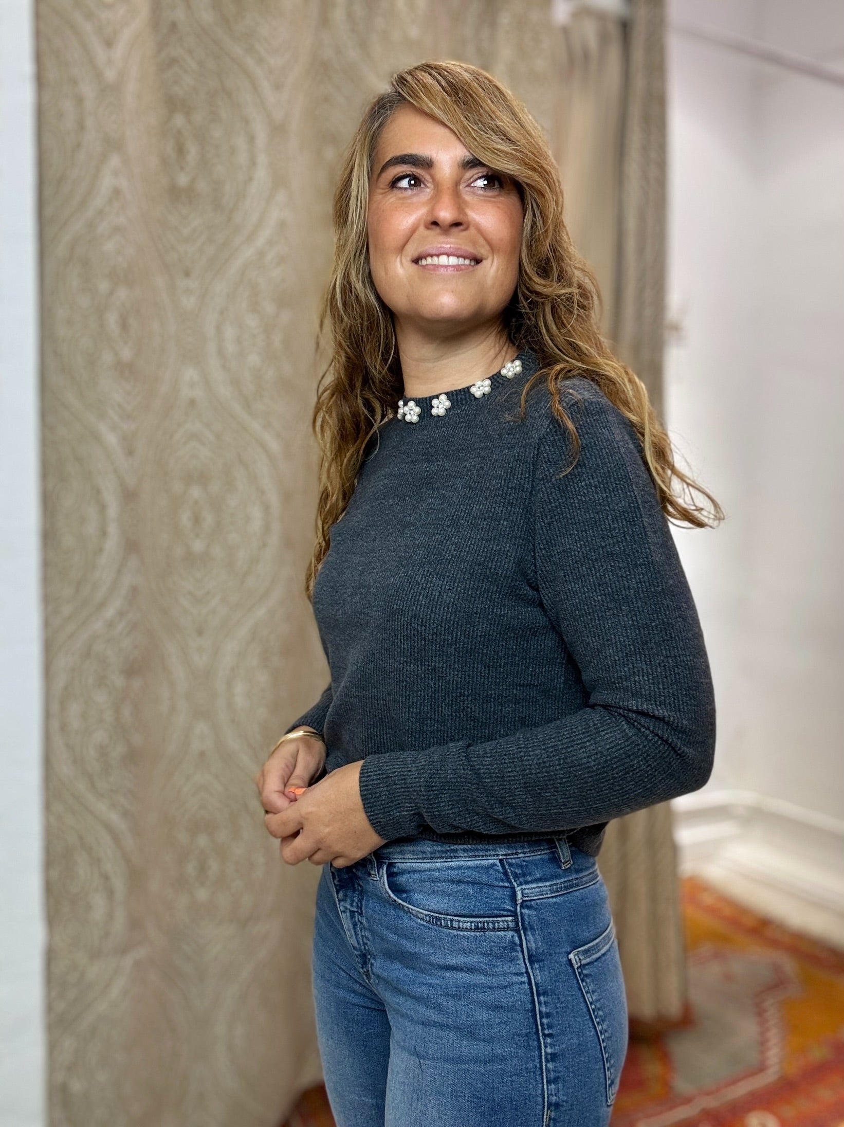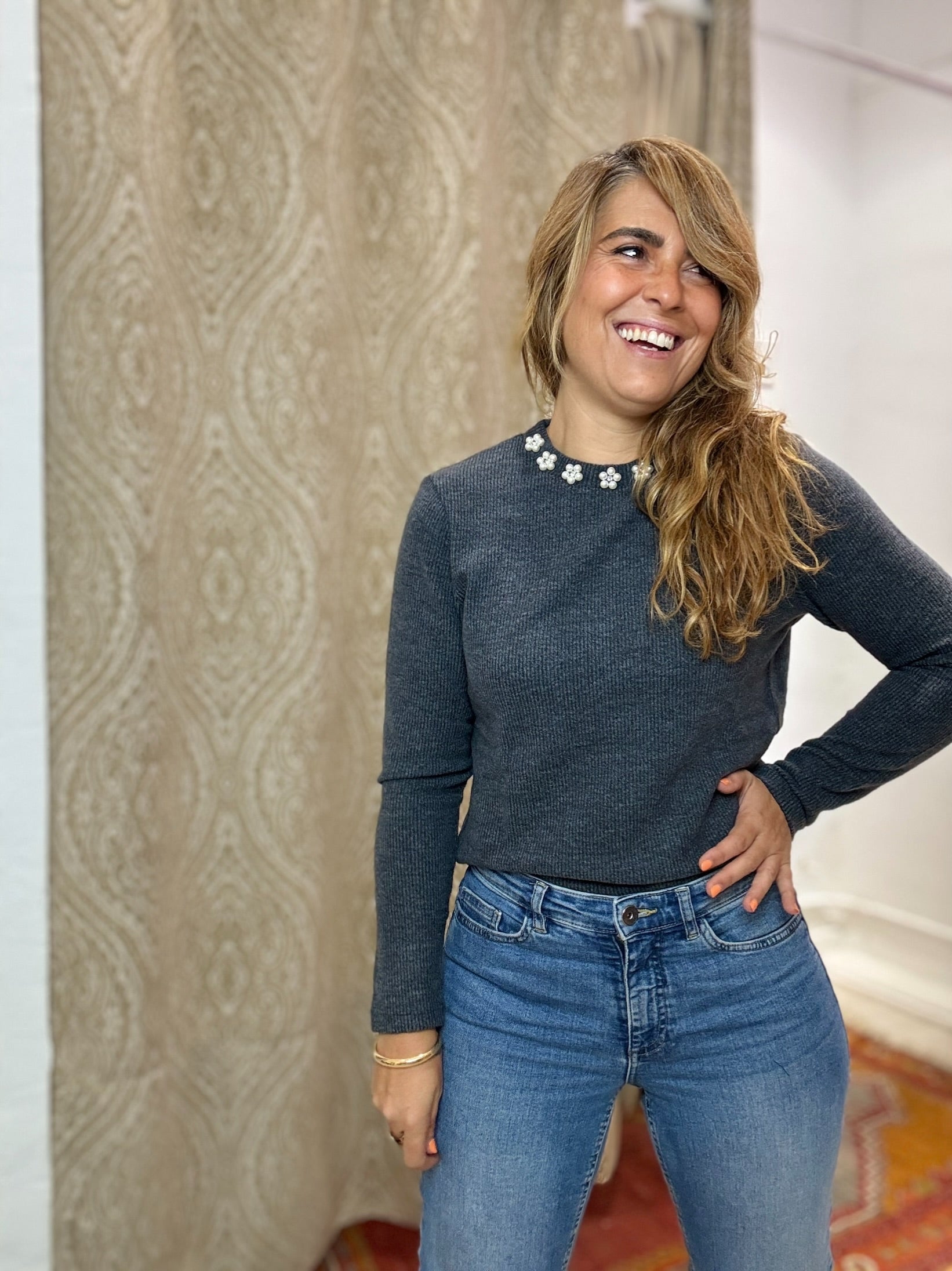 -Jersey básico en un gris medio de punto fino muy dulce y manga larga.